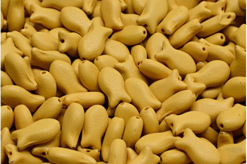 OUTLET 10 grams Simple Fish Beads, 10 x 6 mm, White Opal Bright Dark Yellow Matte (02020-22M03), Glass, Czech Republic