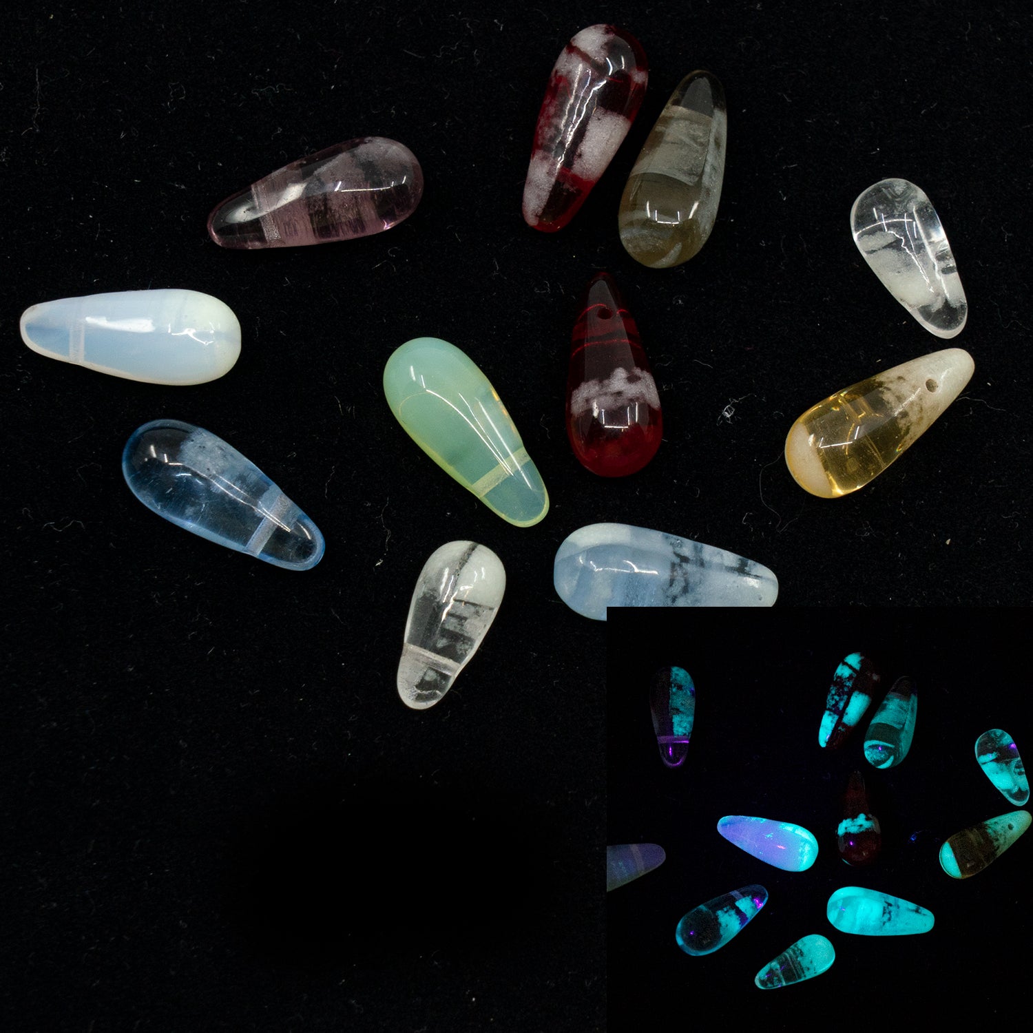 OUTLET 10 grams Drop Beads, 17 x 8 mm, Mixed Colors Glow Stripes (mix-88035), Glass, Czech Republic