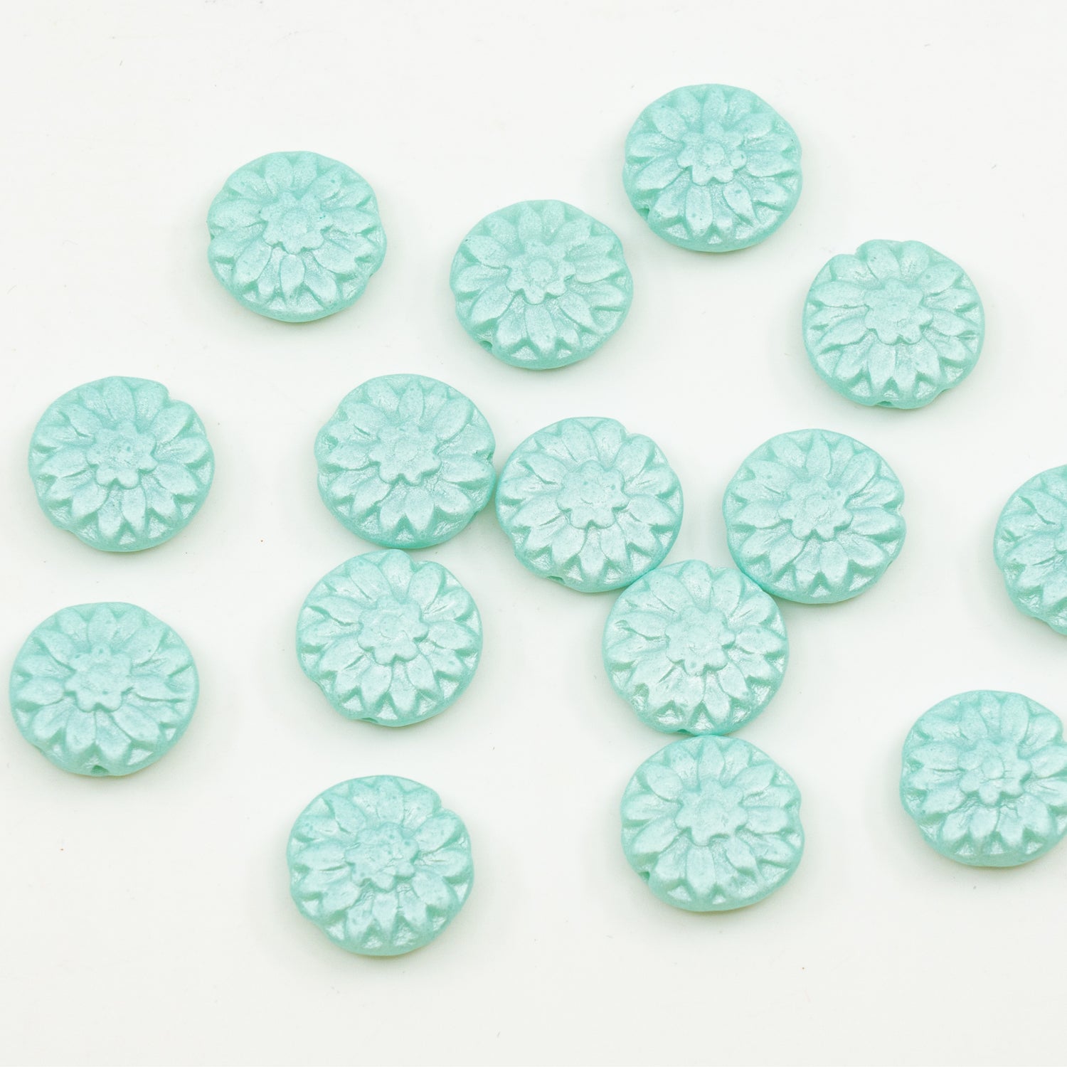 OUTLET 10 grams 2-Hole Edelwiess Flower Beads, 14 x 14 mm, Turquise Pastel Pearl Turquoise (63110-77752), Glass, Czech Republic