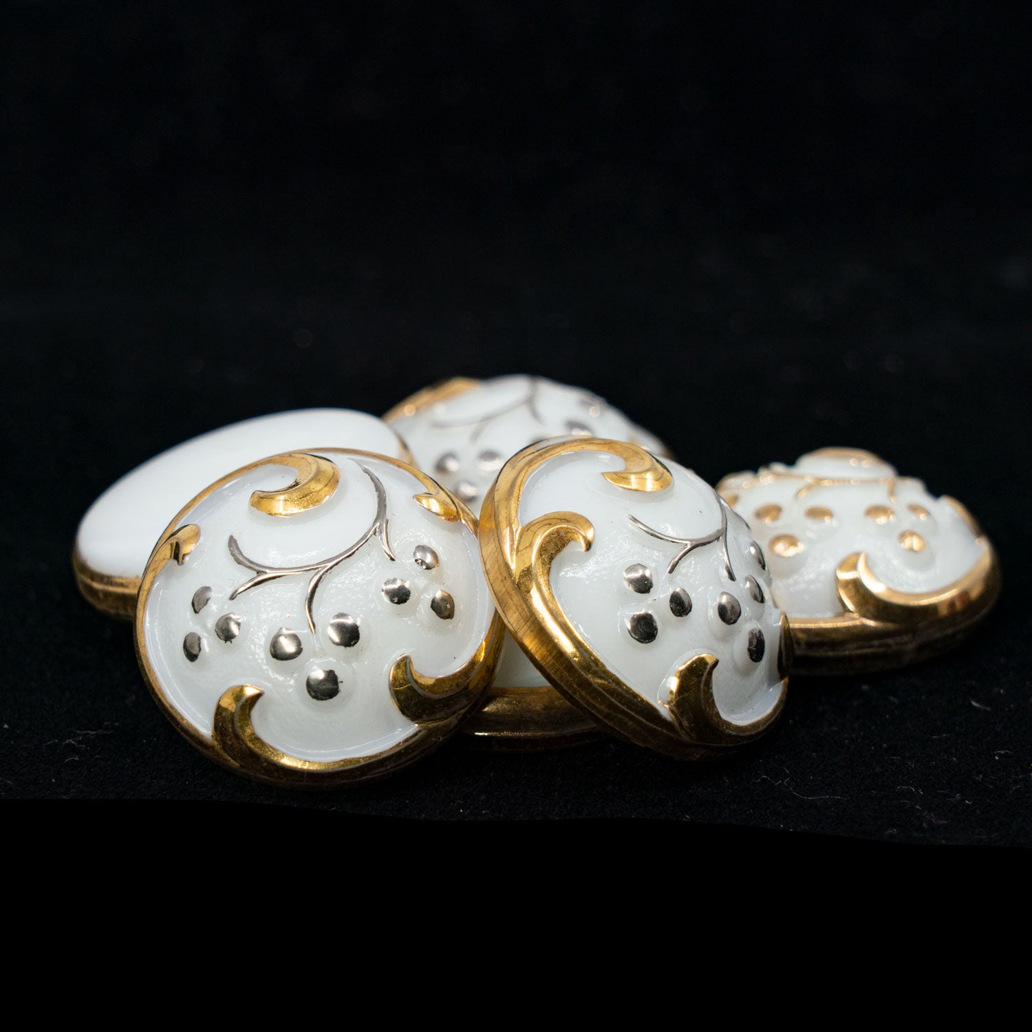 OUTLET 1pc Czech Glass Handmade Button, Size 10 (22.5 mm), Floral Design - White Gold Berries