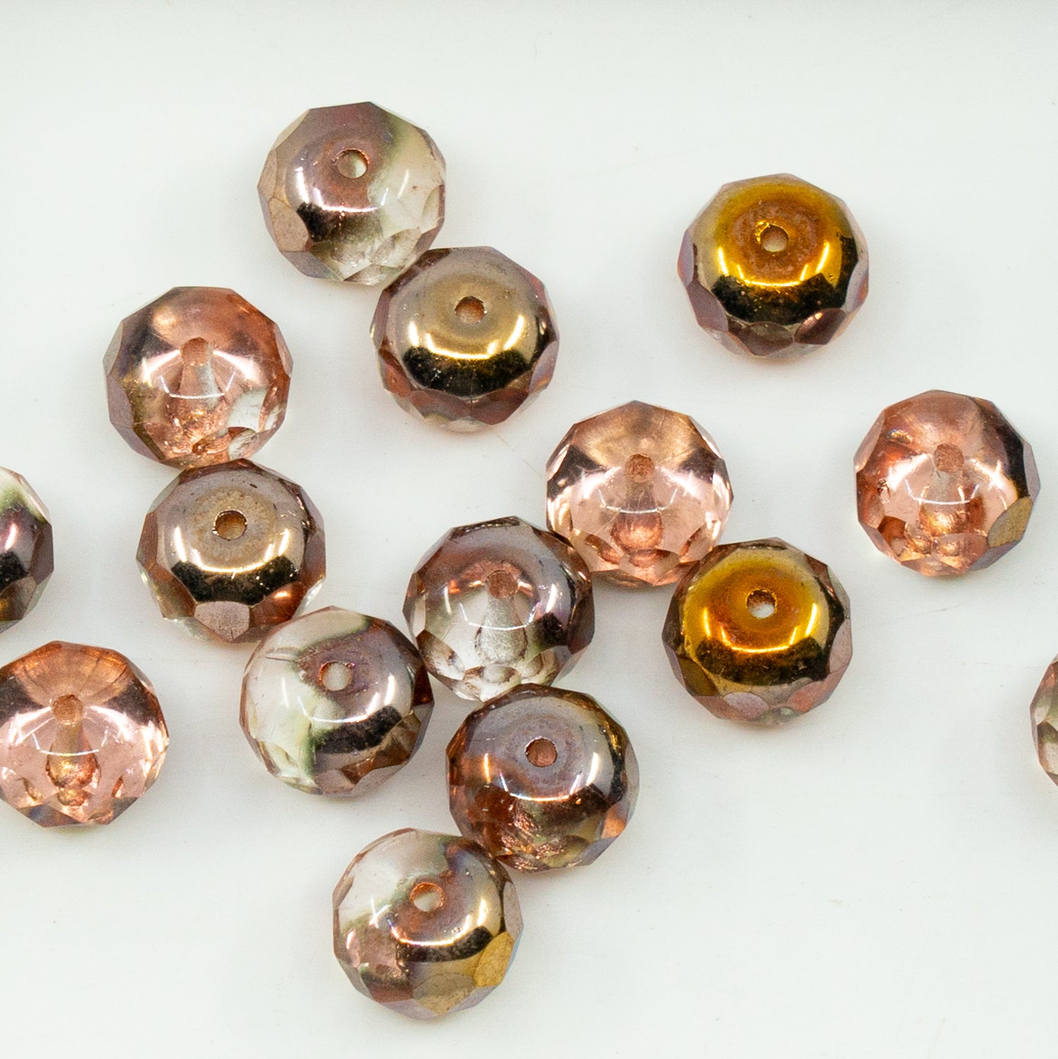 OUTLET 10 grams Faceted Rondelle Fire Polished Beads, Crystal Rose Gold Capri (00030-27101), Glass, Czech Republic