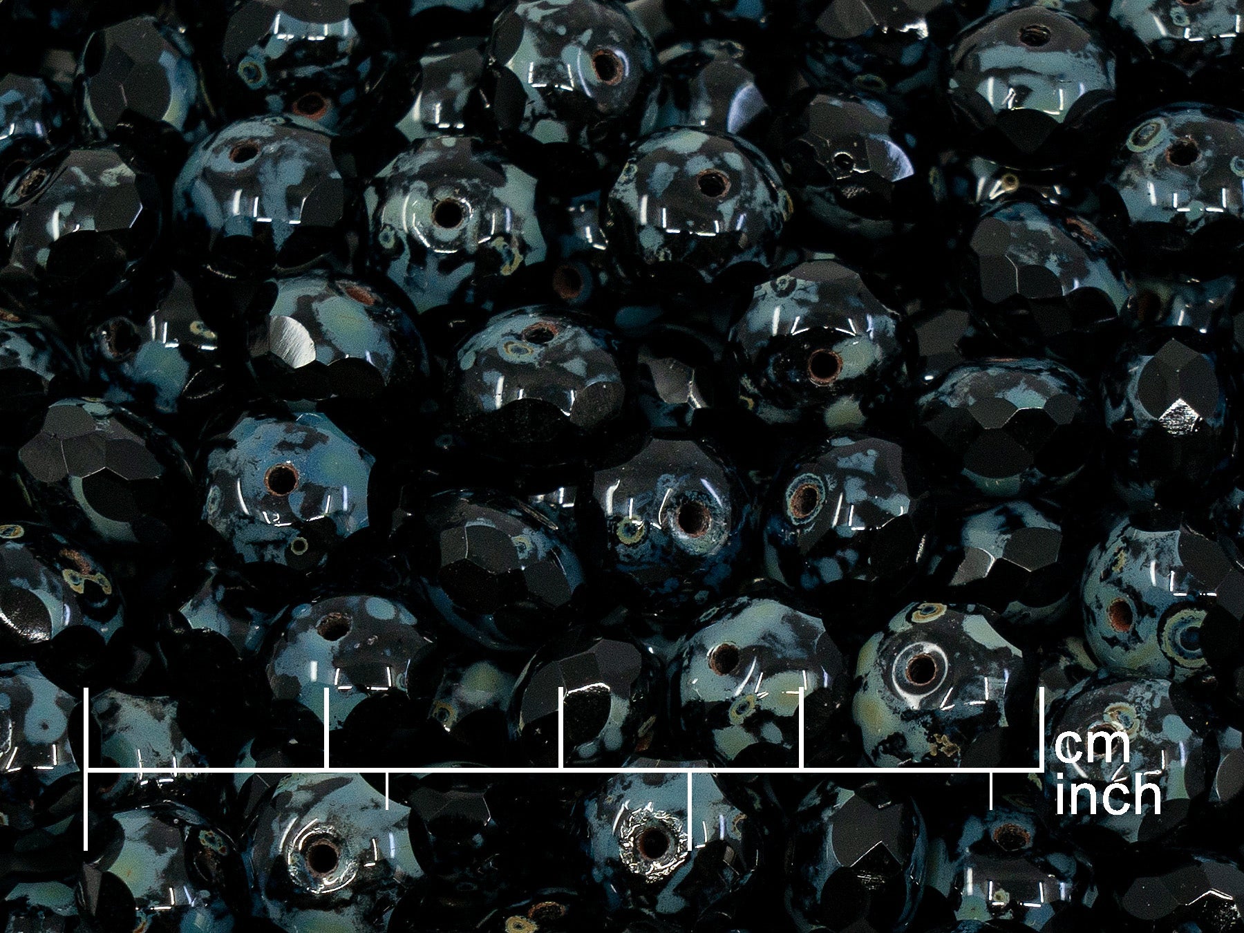 OUTLET 10 grams Faceted Rondelle Fire Polished Beads, 9 x 9 mm, Black Travertin (23980-86800), Glass, Czech Republic