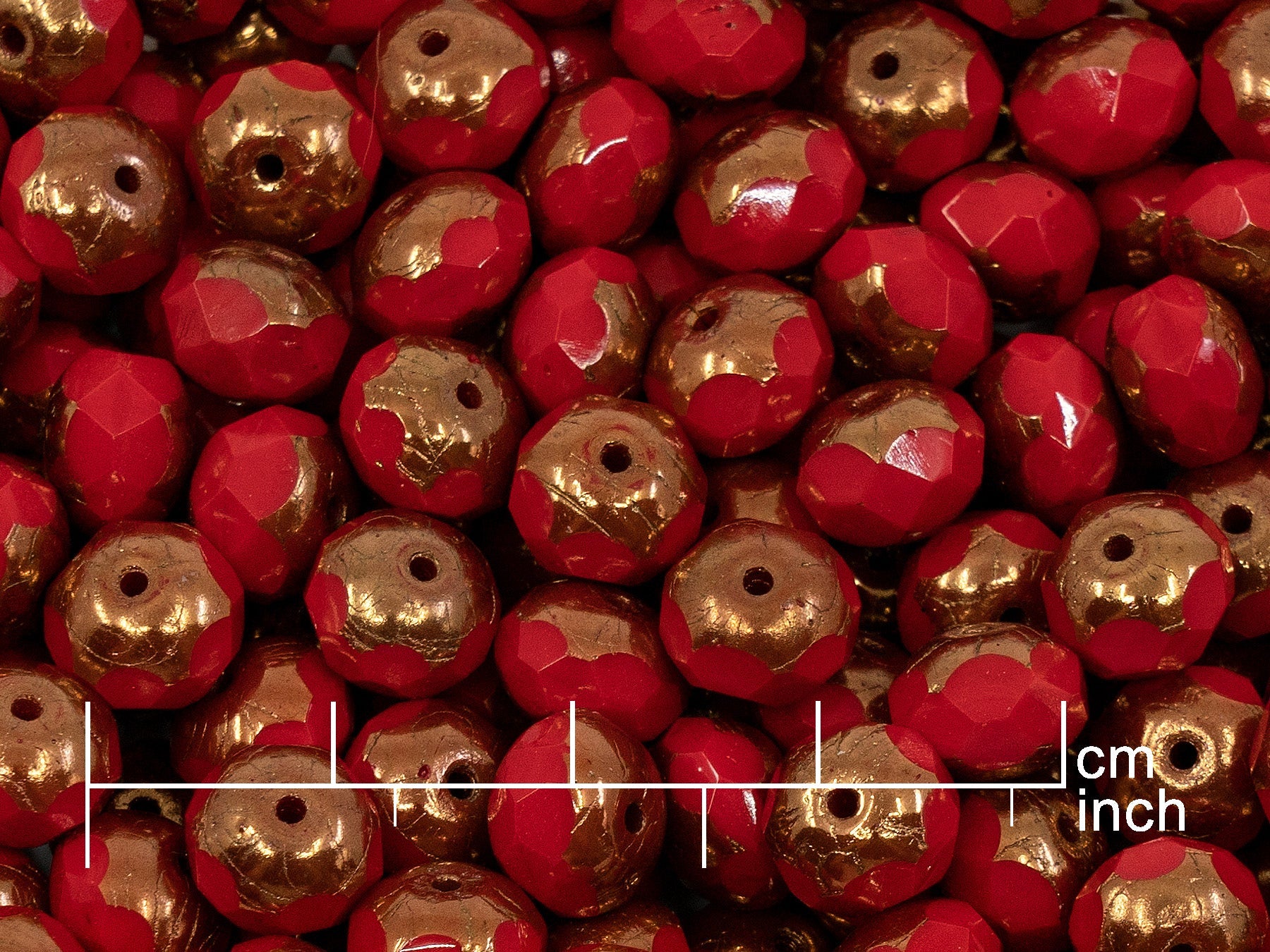 OUTLET 10 grams Faceted Rondelle Fire Polished Beads, 10300 x mm, 90 Opaque Red Bronze (090-93200-14415), Glass, Czech Republic