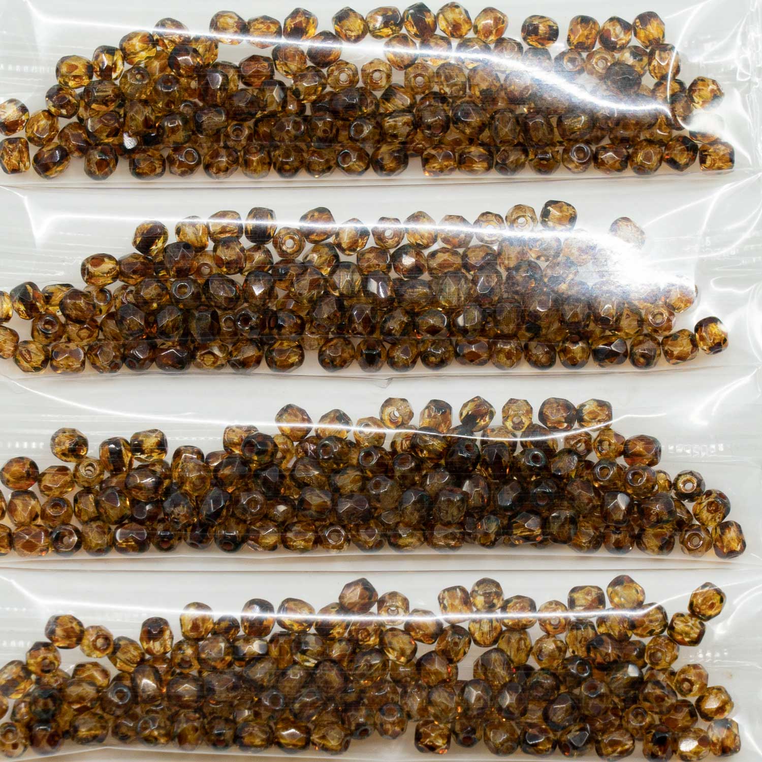 OUTLET 10 grams Faceted Round Fire Polished Beads, 4 x 4 mm, Crystal Travertin (00030-86800), Glass, Czech Republic