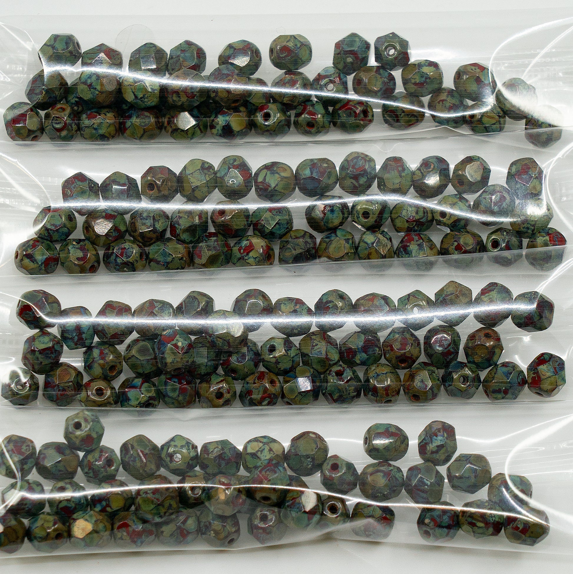OUTLET 10 grams Faceted Round Fire Polished Beads, 6 x 6 mm, Opaque Red Travertin (93220-86800), Glass, Czech Republic
