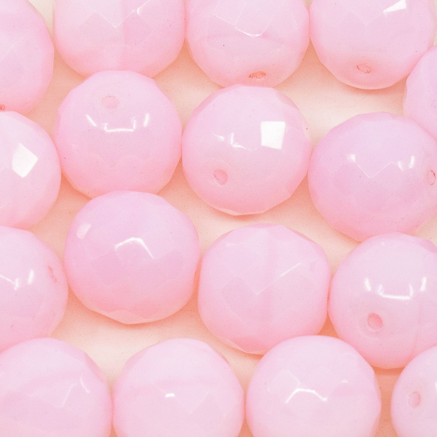 OUTLET 10 grams Faceted Round Fire Polished Beads, 14 x 14 mm, Opal Cold Pink (72000), Glass, Czech Republic