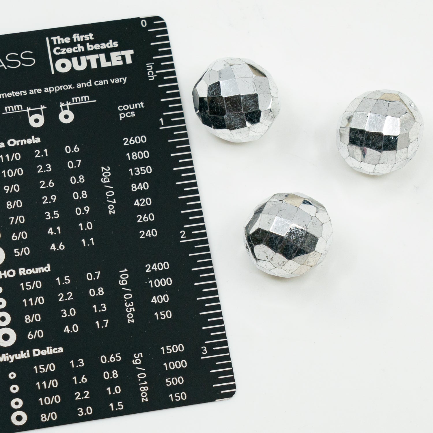OUTLET 10 grams Faceted Round Fire Polished Beads, 18 x 18 mm, Crystal Silver (00030-27000), Glass, Czech Republic