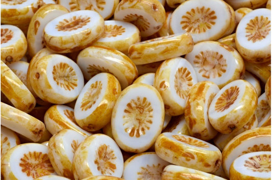 OUTLET 10 grams Table Cut Kiwi Beads, 14 x 10 mm, Chalk White Travertin (03000-86800), Glass, Czech Republic