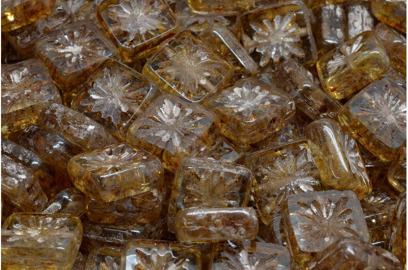 OUTLET 10 grams Table Cut Square Kiwi Beads, 10 x 10 mm, Crystal Senegal Silver (00030-15681), Glass, Czech Republic
