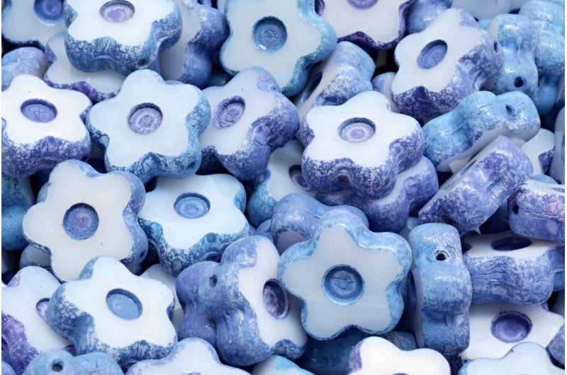 OUTLET 10 grams Table Cut 5-Petal Simple Flower Beads With Dot, 13 x 13 mm, White 4325 (02010-04325), Glass, Czech Republic