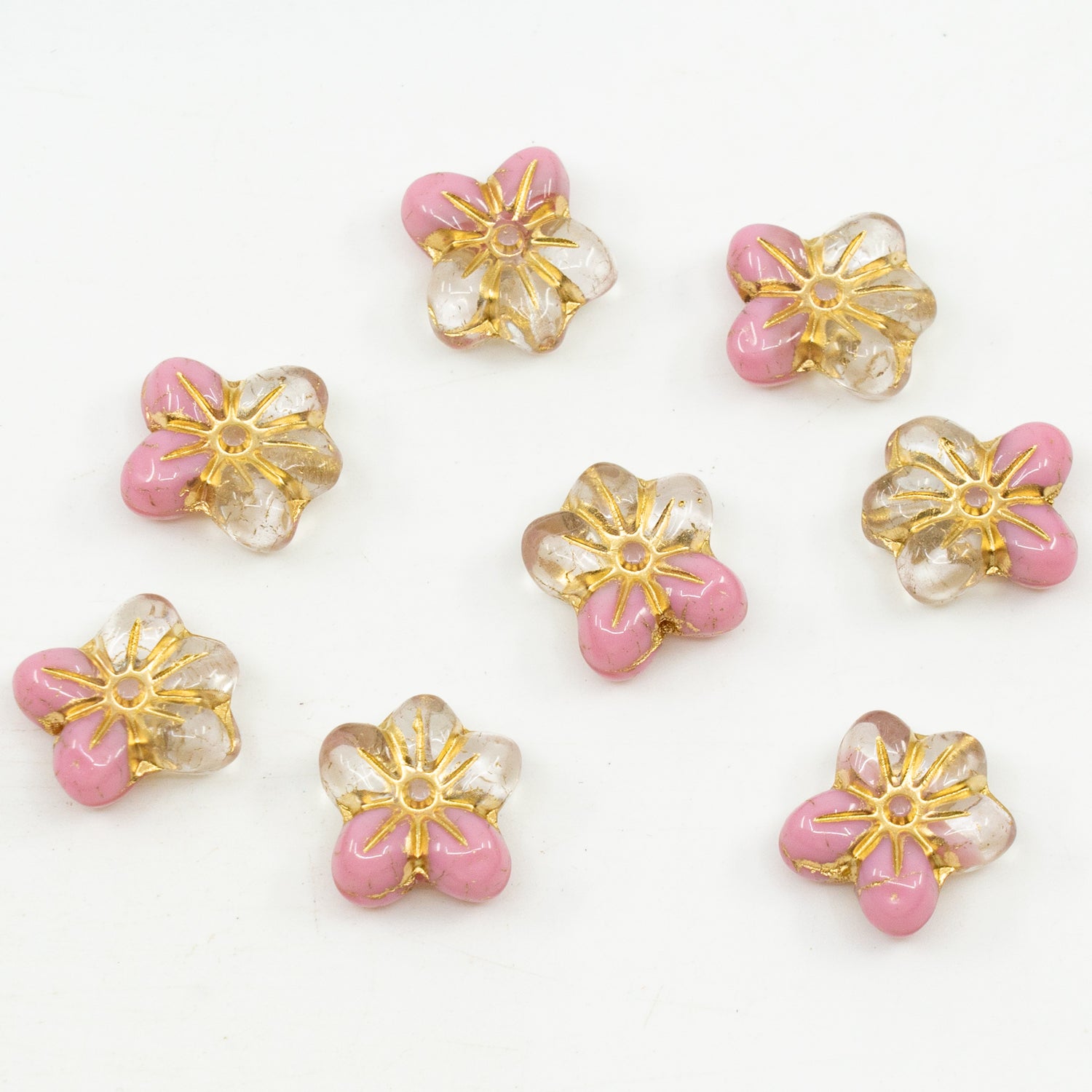 OUTLET 10 grams Flower Pressed Glass Beads, 14 x 12 mm, Opaque Pink Gold Lined (76028-54202), Glass, Czech Republic