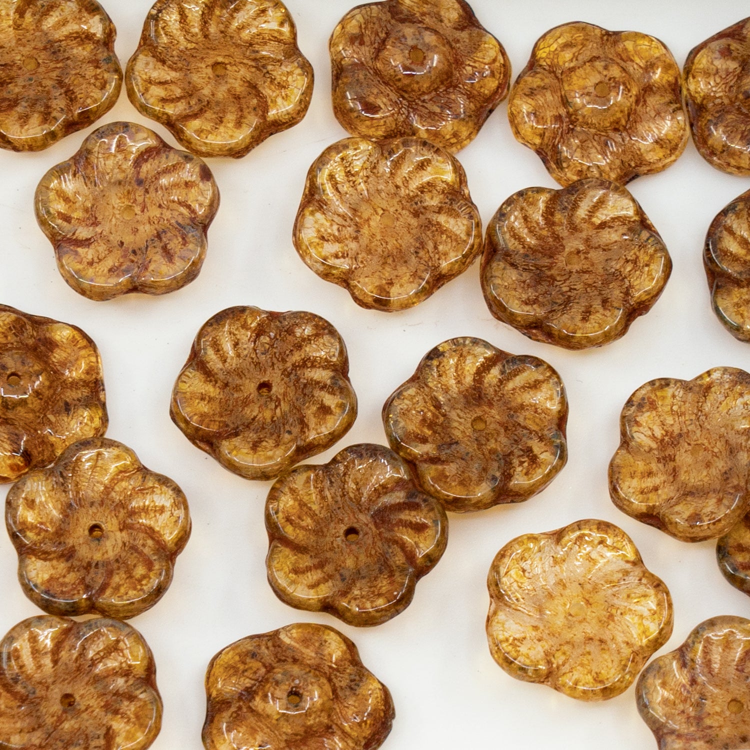 OUTLET 250g/50g Flat Flower Beads, 12 x 12 mm, Crystal Travertin (00030-86800), Glass, Czech Republic