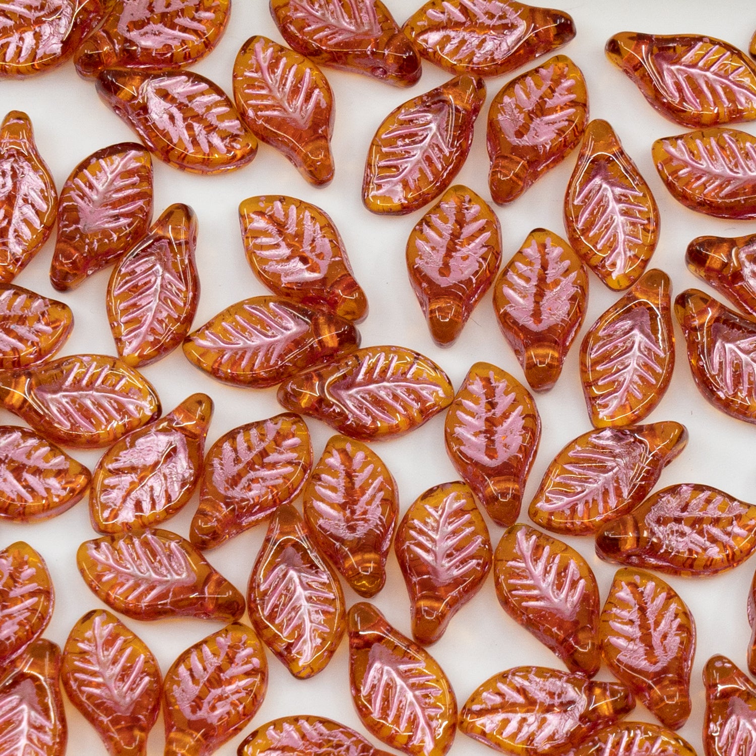 OUTLET 250g/50g Bay Leaf Beads, 6 x 12 mm, Transparent Brown Pink Lined (10090-54321), Glass, Czech Republic