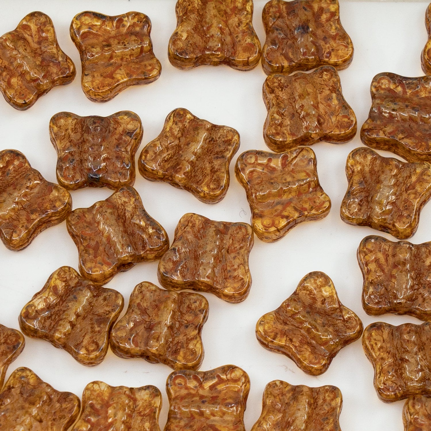 OUTLET 250g/50g Pressed Beads Butterflies, 12 x 12 mm, Crystal Travertin (00030-86800), Glass, Czech Republic