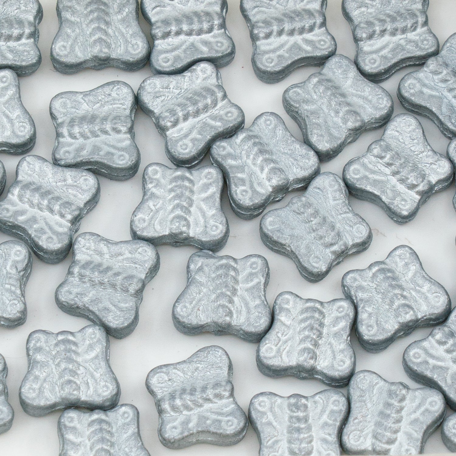 OUTLET 250g/50g Pressed Beads Butterflies, 12 x 12 mm, Matter Silver (02010-51500), Glass, Czech Republic