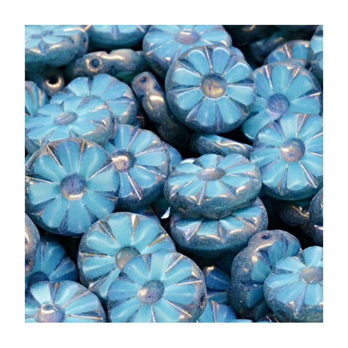 Table cut Czech glass beads flowers, Blue, Glass, Czech Republic