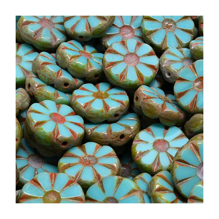 Table cut Czech glass beads flowers, Turquoise, Glass, Czech Republic