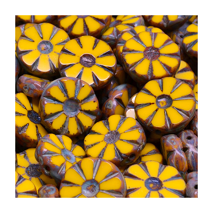 Table cut Czech glass beads flowers, Yellow, Glass, Czech Republic