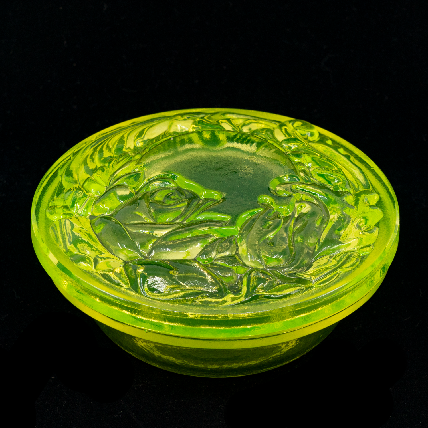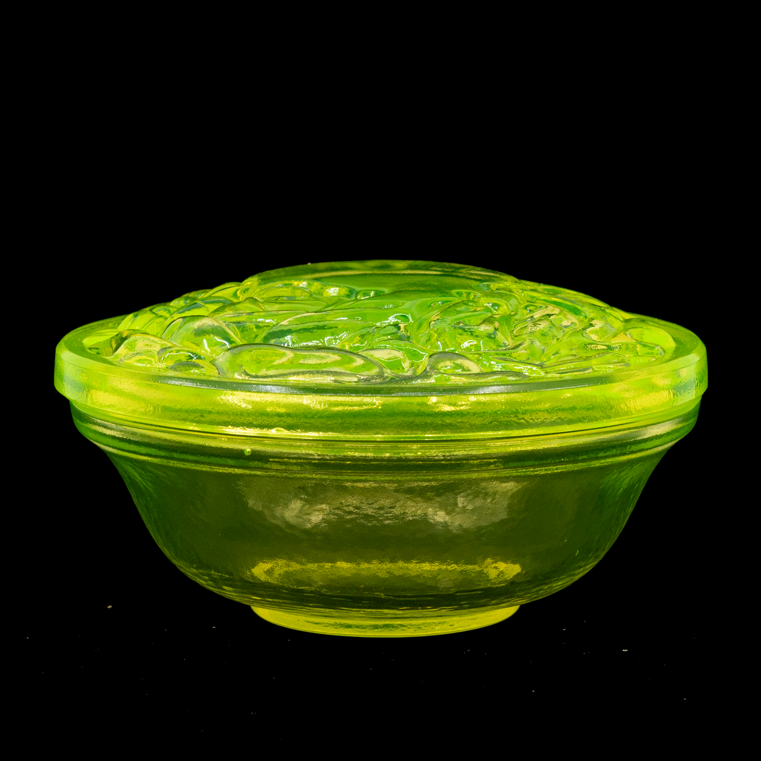 Uranium Glass Tableware (Glow under UV) - Jewelry Box / Bowl with Lid - Rose, Czech Republic