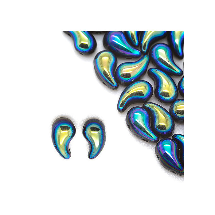 ZoliDuo Czech press glass beads with a comma shape. Flat back, puffed top. Left, right version. Ideal to combine with WibeDuo beads. Zoliduos' unique curved paisley shape creates a yin and yang effect which is pleasing to the eye.