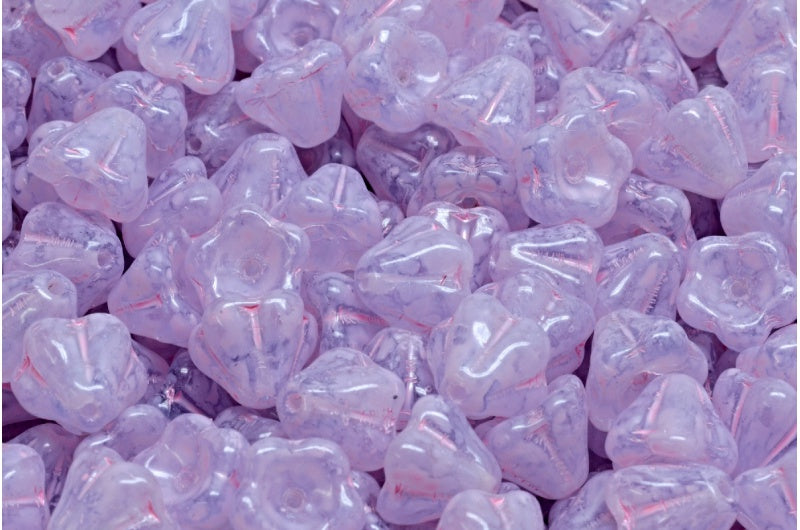 铃铛花珠,透明蓝暖紫色斑点(30010-33304),玻璃,捷克共和国
