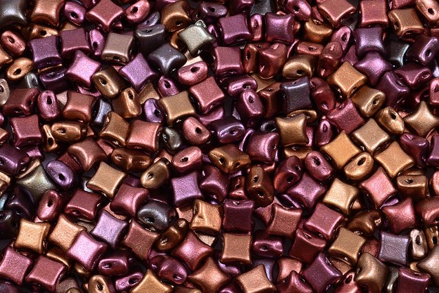 Wibeduo 双孔串珠星形十字,紫色彩虹金属鸢尾花 (01640),玻璃,捷克共和国