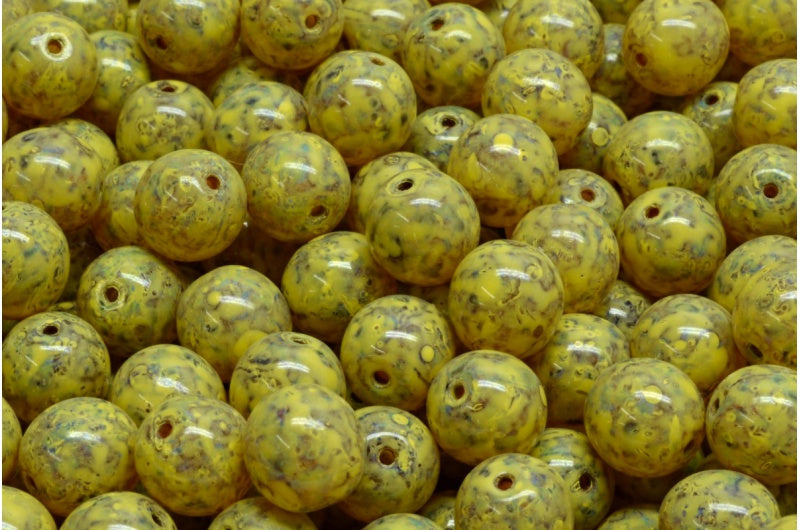 圆形 Druck 珠子,水晶石灰华米色黄色斑点 (00030-86800-33303),玻璃,捷克共和国