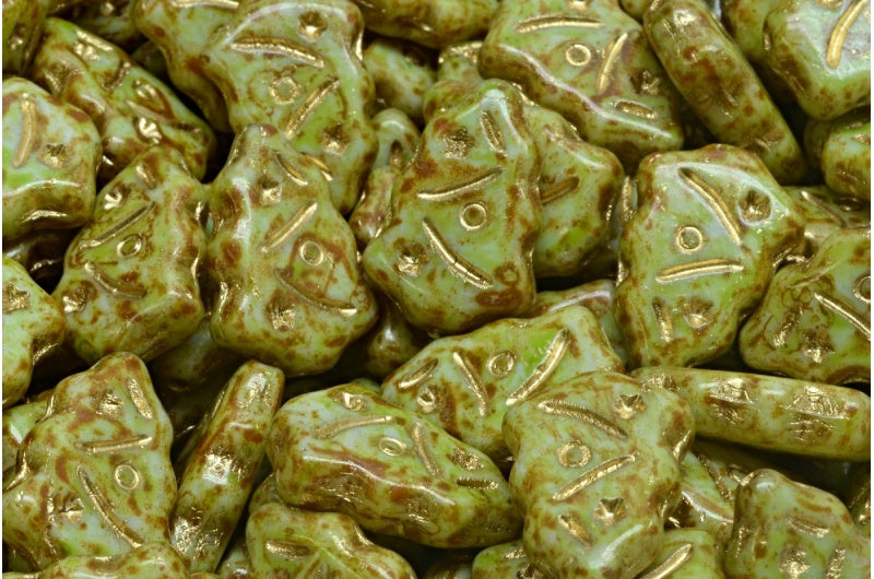 圣诞树珠子,白色洞石浅绿色金色内衬(02010-86800-34310-54302),玻璃,捷克共和国