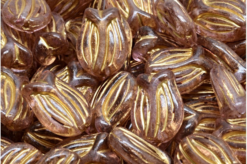 迷你郁金香珠,水晶金线浅紫红色(00030-54302-34306),玻璃,捷克共和国