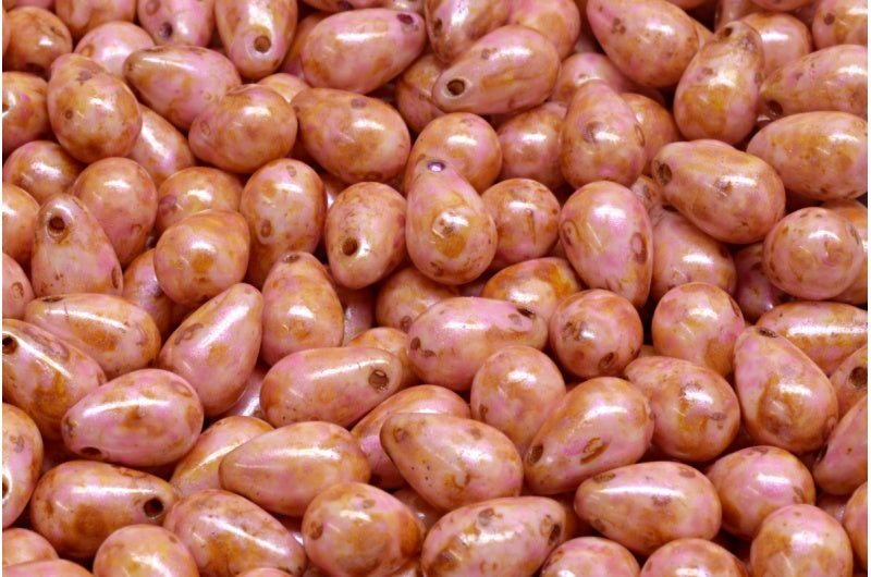 吊珠,白色粉红色米色光泽斑点 (02010-65323),玻璃,捷克共和国