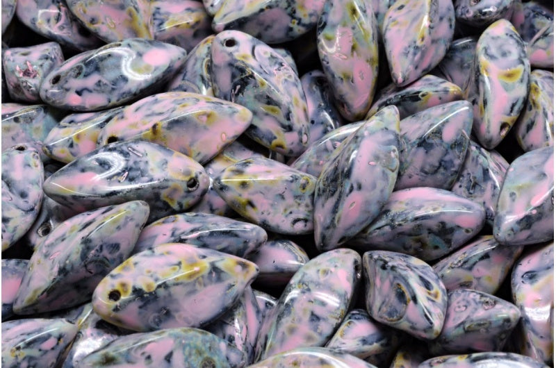 扭纹珠,黑色石灰华暖紫色斑点(23980-86800-33304),玻璃,捷克共和国