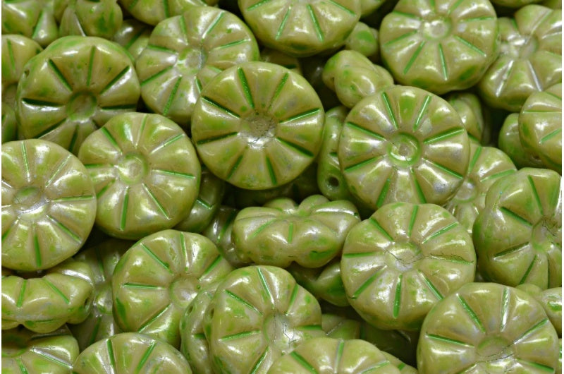 向日葵珠子,不透明米色银色泼墨绿色斑点(13010-86700-33311),玻璃,捷克共和国