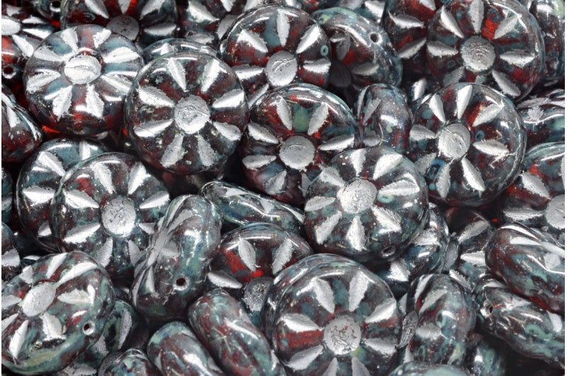 向日葵珠,透明红色石灰华银衬里(90060-86800-54301),玻璃,捷克共和国