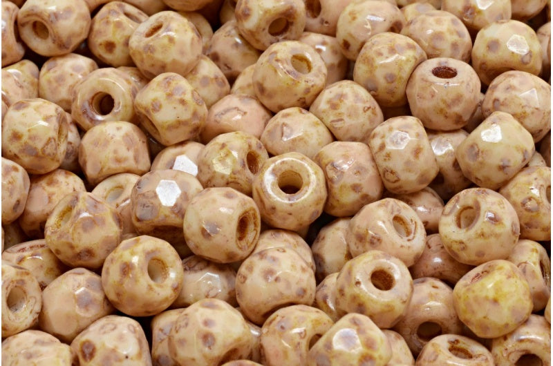 多面小马贝果珠,粉笔白洞石米色洞石斑点(03000-86800-33301),玻璃,捷克共和国