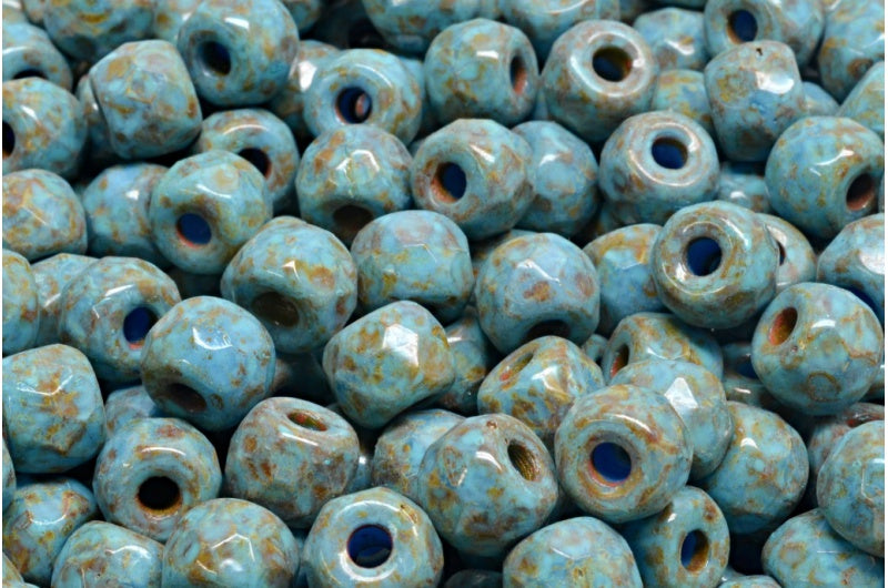 多面小马贝果珠,不透明蓝色洞石绿松石斑点(33100-86800-33309),玻璃,捷克共和国
