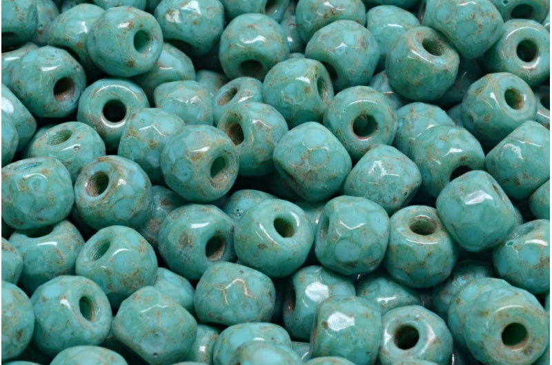 多面小马贝果珠,绿松石色洞石,绿松石斑点(63130-86800-33309),玻璃,捷克共和国
