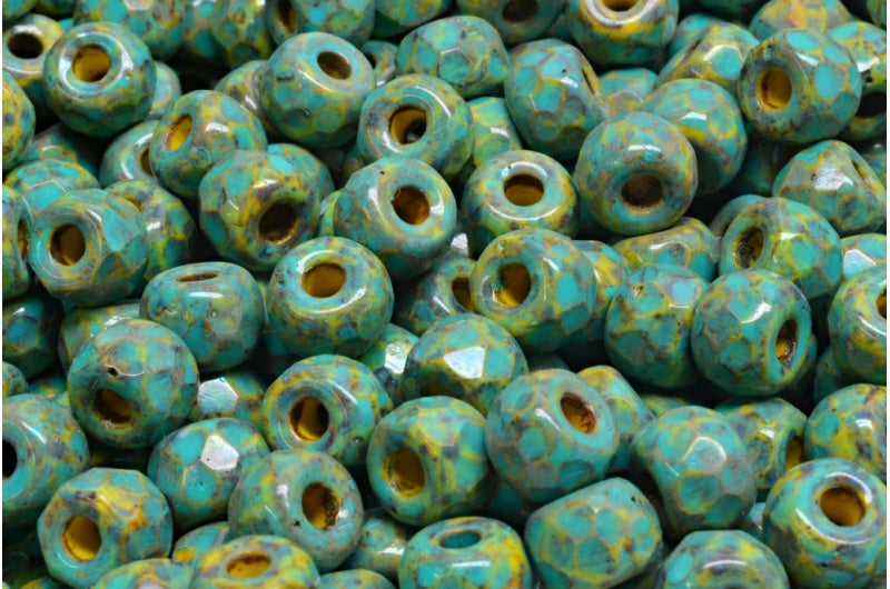 多面小马贝果珠,黄色洞石绿松石斑点(83120-86800-33310),玻璃,捷克共和国