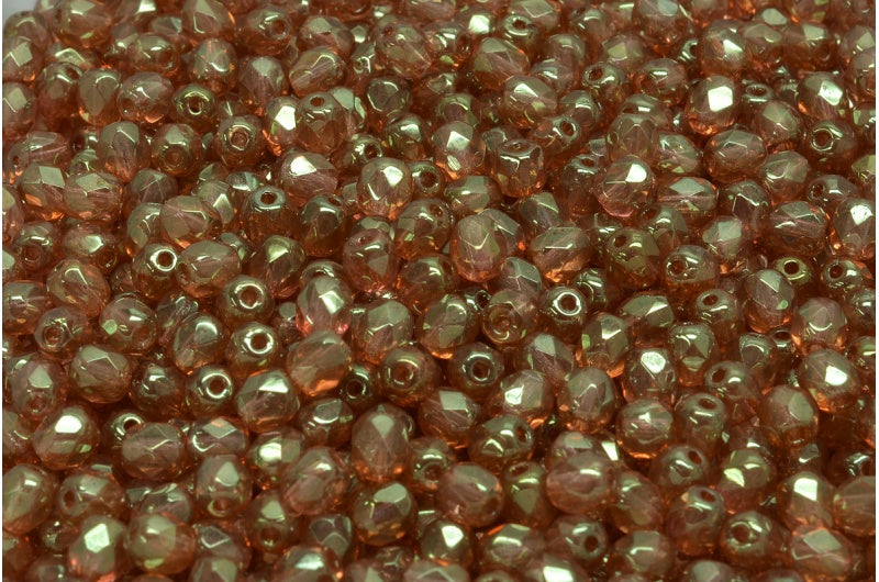 多面圆形火抛光珠,水晶光泽红色全涂层 (00030-14495),玻璃,捷克共和国