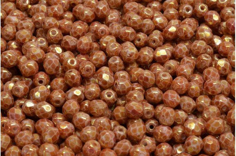 圆形火抛光刻面珠,粉笔白大理石红棕色 (03000-15422),波西米亚水晶玻璃,捷克共和国