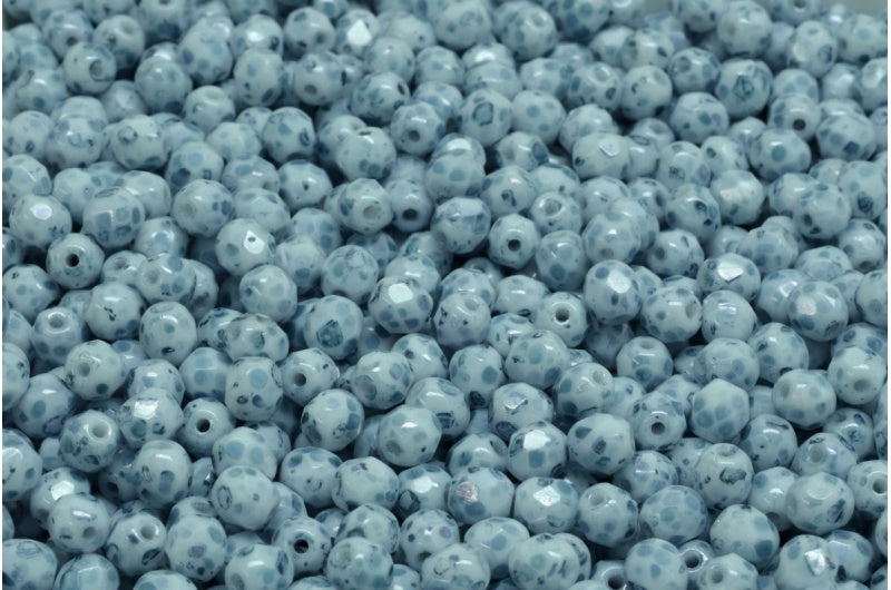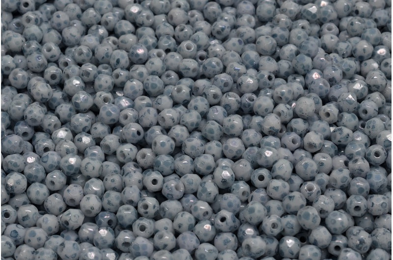 圆形火抛光刻面珠,粉笔白大理石蓝色 (03000-15426),波西米亚水晶玻璃,捷克共和国