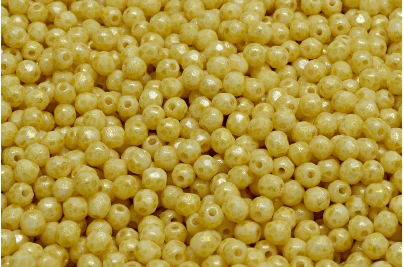 多面圆形火抛光珠,粉笔白浅黄色(03000-34302),玻璃,捷克共和国