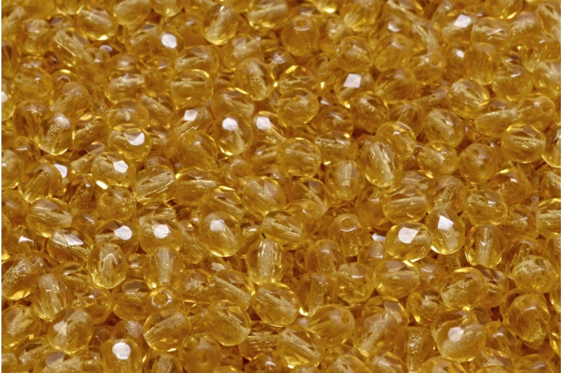 圆形火抛光刻面珠,透明橙色(10030),波西米亚水晶玻璃,捷克共和国
