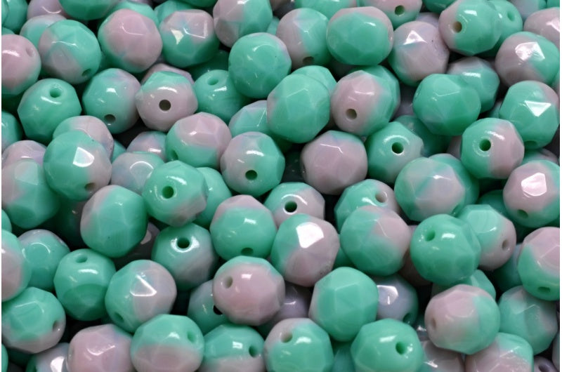 圆形火抛光刻面珠,绿松石不透明紫水晶 (63130-23010),波西米亚水晶玻璃,捷克共和国