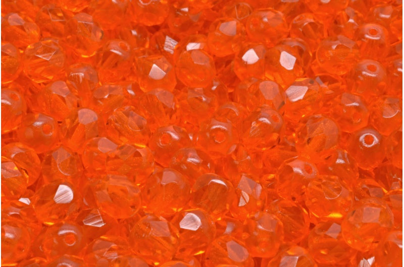 圆形火抛光刻面珠,透明橙色(90020),波西米亚水晶玻璃,捷克共和国