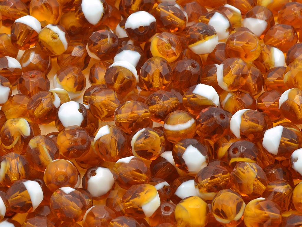 多面圆形火抛光珠,混合颜色(MIX),玻璃,捷克共和国