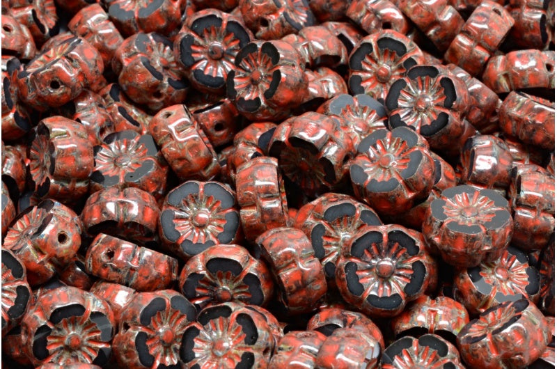 夏威夷花桌切珠,黑色石灰华米色橙色斑点 (23980-86800-33307),玻璃,捷克共和国