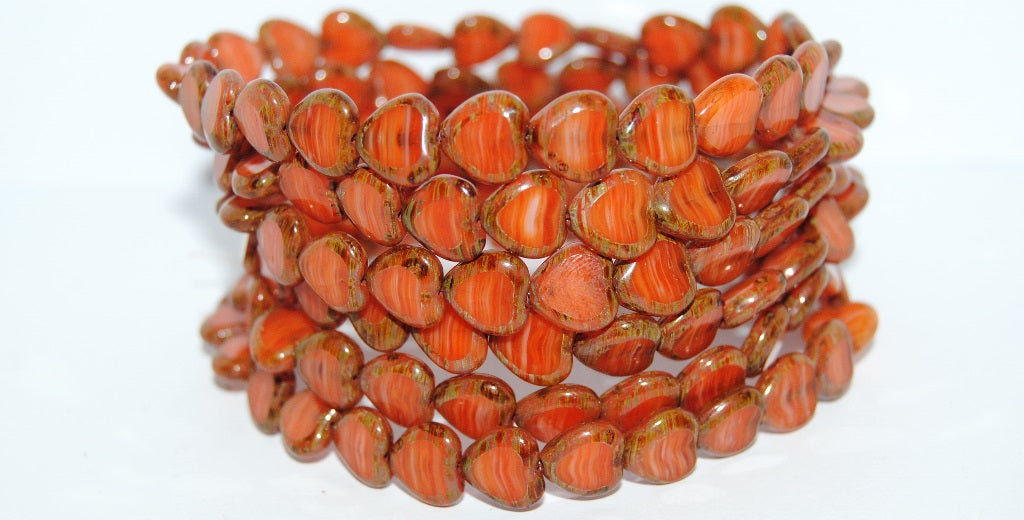 桌面切割心形珠,(橙色蛋白石 43400),玻璃,捷克共和国