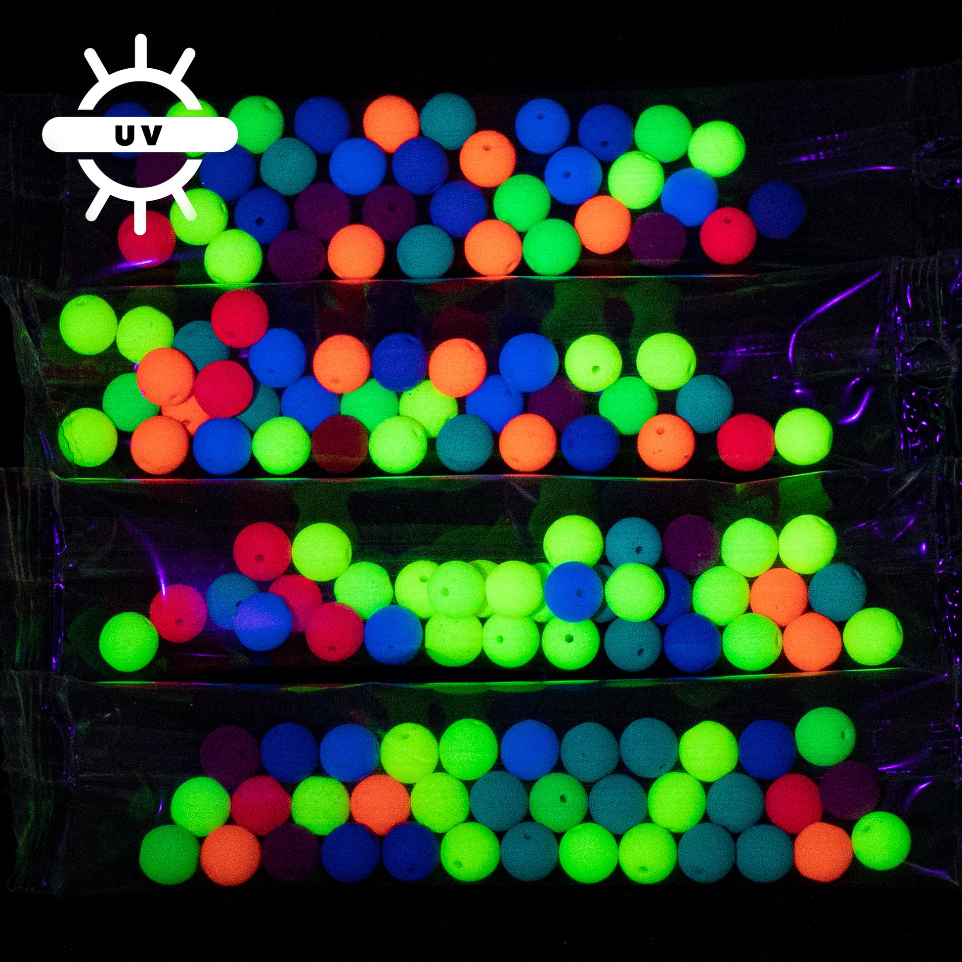 所有颜色在紫外线下都会发光,但深色发光强度不如浅色发光强度高。最强的发光珠子是黄色和绿色的。
