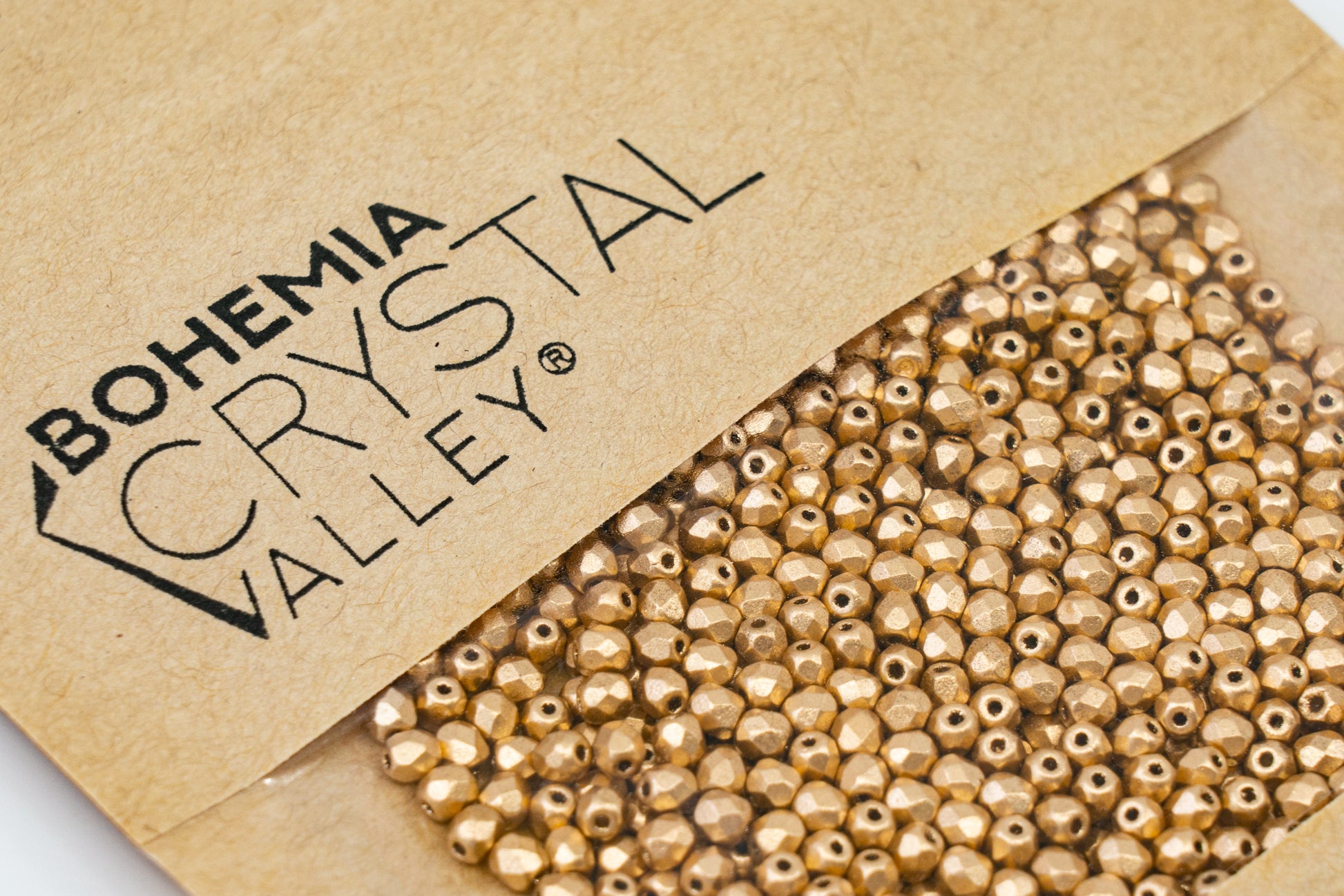 OUTLET 10 克刻面圆形火抛光珠,4 x 4 毫米,阿兹特克水晶淡金色 (00030-01710),玻璃,捷克共和国