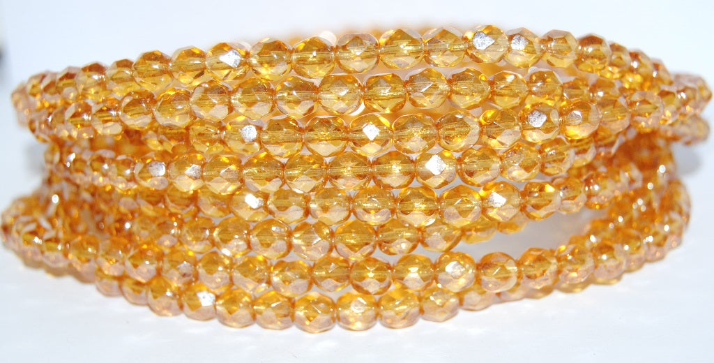 火抛光圆形刻面珠,透明橙色赤铁矿(10040-14400),玻璃,捷克共和国